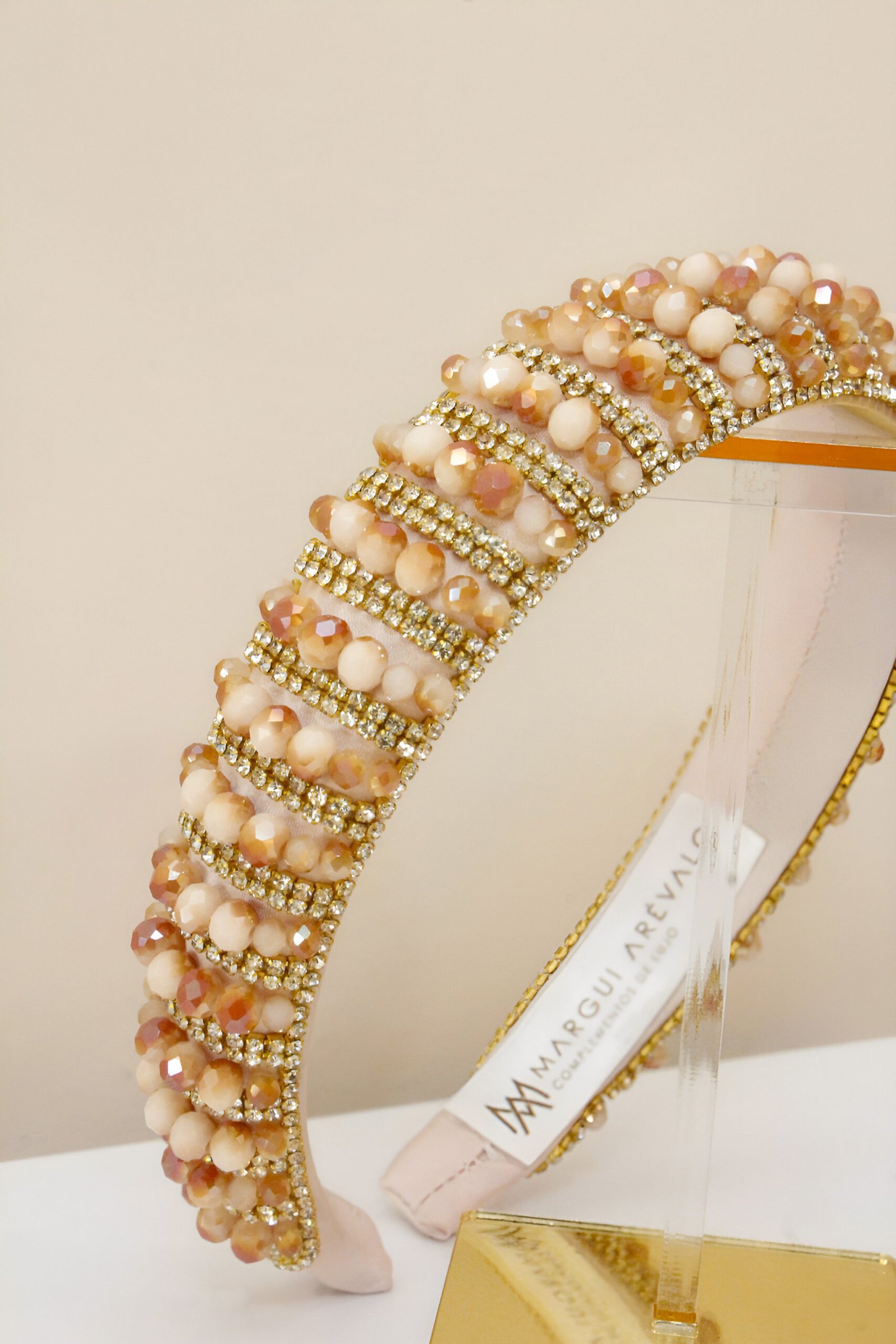 Nuestra diadema de murano facetado en tonos pastel, adornada con delicados strass cristalinos, es el complemento perfecto para destacar con sofisticación. Diseñada para mujeres que saben que los detalles hacen la diferencia.