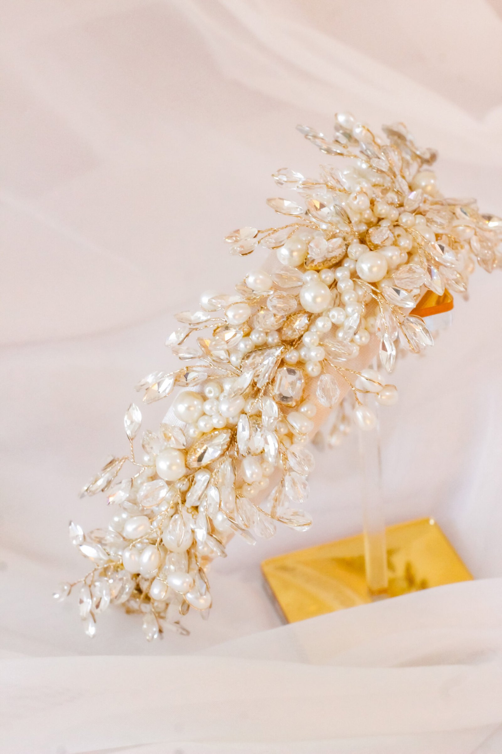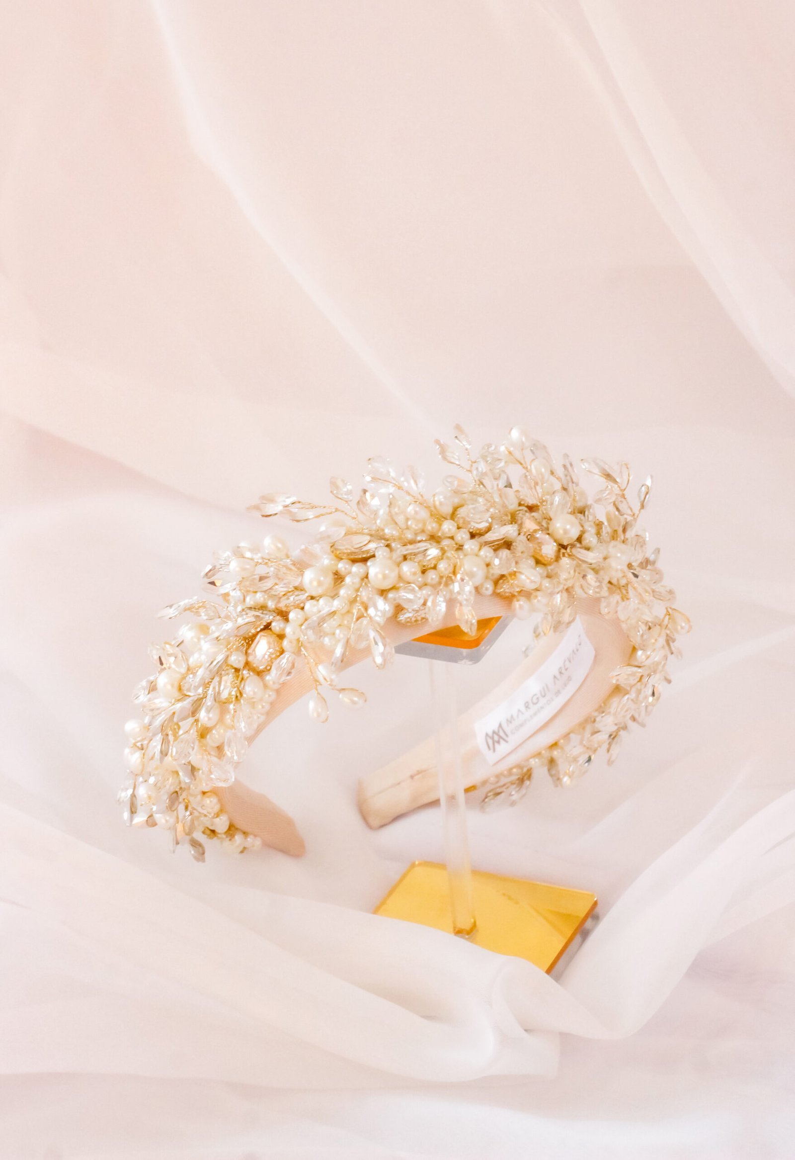 Esta diadema-tocado de nuestra colección Alma del Río fue creada para novias que desean deslumbrar sin límites.