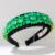 Diadema ancha de 4 cm, elaborada en terciopelo negro, decorada con gemas de cristal en color verde mate.